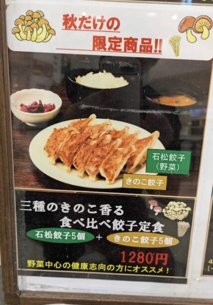 また、石松餃子5個ときのこ餃子5個の計10個の定食になっています。